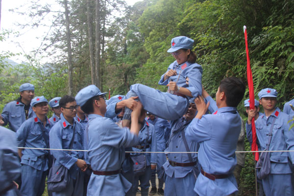 抵達井岡山后,全體人員立刻進入三灣隊伍整編環(huán)節(jié),推薦隊長、政委和旗手,設(shè)計隊名、口號和LOGO。很快“飛龍隊”、“戰(zhàn)鷹隊” 等名字紛紛閃亮登場。“龍征萬里,所向披靡”、“ 群狼行千里,星火可燎原”等口號一次又一次迎來全場的陣陣歡呼。隨后進行了“穿越叢林、突破封鎖線、匍匐前進、火線救援”4個比賽項目,這些比賽項目,增強了大家的團隊意識,每名成員充分認識到了團結(jié)協(xié)作、友愛互助的重要性,使大家在比賽中受到啟發(fā)、受到鼓舞、更使大家得到了鍛煉,經(jīng)受了考驗。